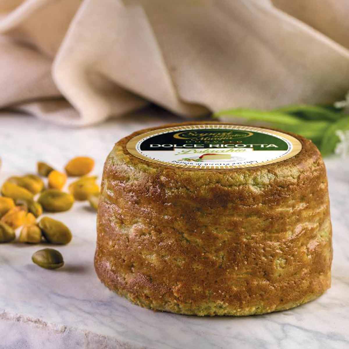 Ingredients: Ricotta 70% (cow’s MILK whey, buffalo’s MILK whey, MILK, salt), sugar, U.H.T. CREAM, PISTACHIO paste 12% (toasted PISTACHIOS 99%, natural coloring: chlorophyll, curcumin), derived modified starch from potato, preservative: sorbic acid.